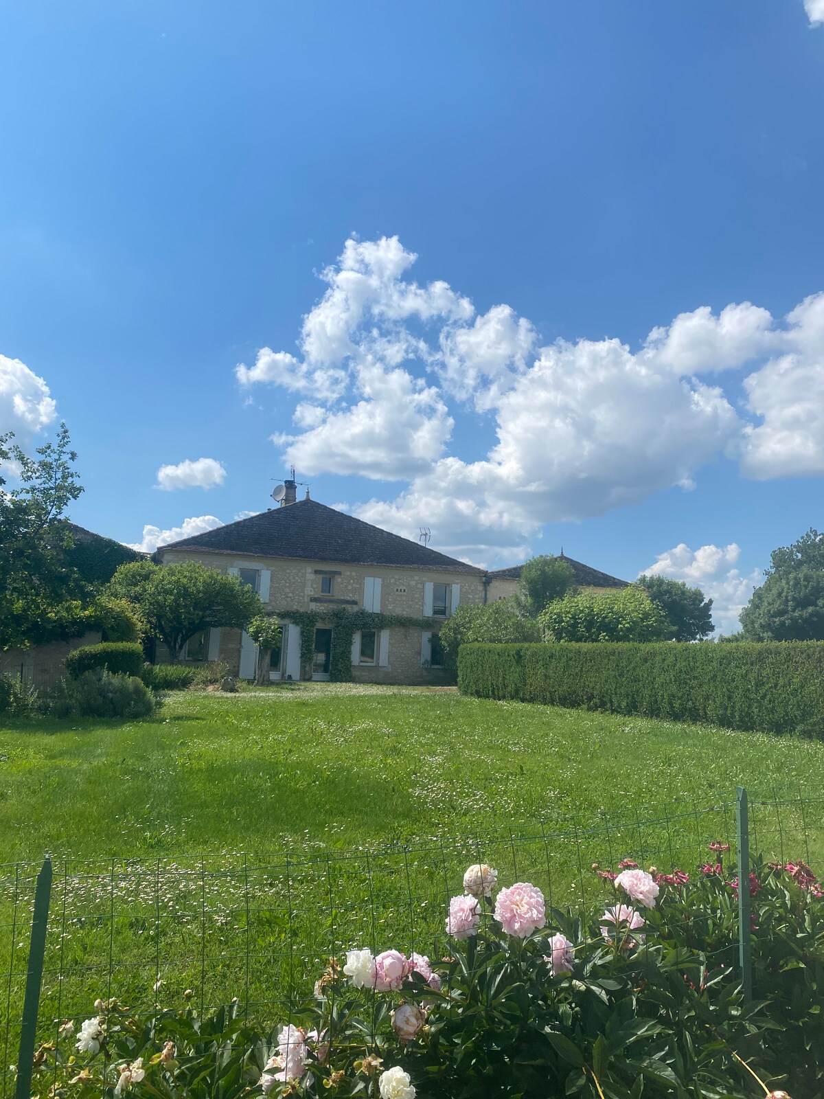 Cauți pace și liniște, o schimbare de peisaj sau trebuie doar să te reîncarci cu familia sau prietenii? Bun-venit! Departe de supraaglomerarea verii, vei fi fermecat de calmul și liniștea locului, la porțile purpurii Périgord (Eymet și Bergerac). Casa este situată în centrul unui sat fermecător cocoțat pe vârful unui deal, cu o grădină frumoasă însorită și piscina sa care te întâmpină pentru momente lungi și plăcute de relaxare în pace!