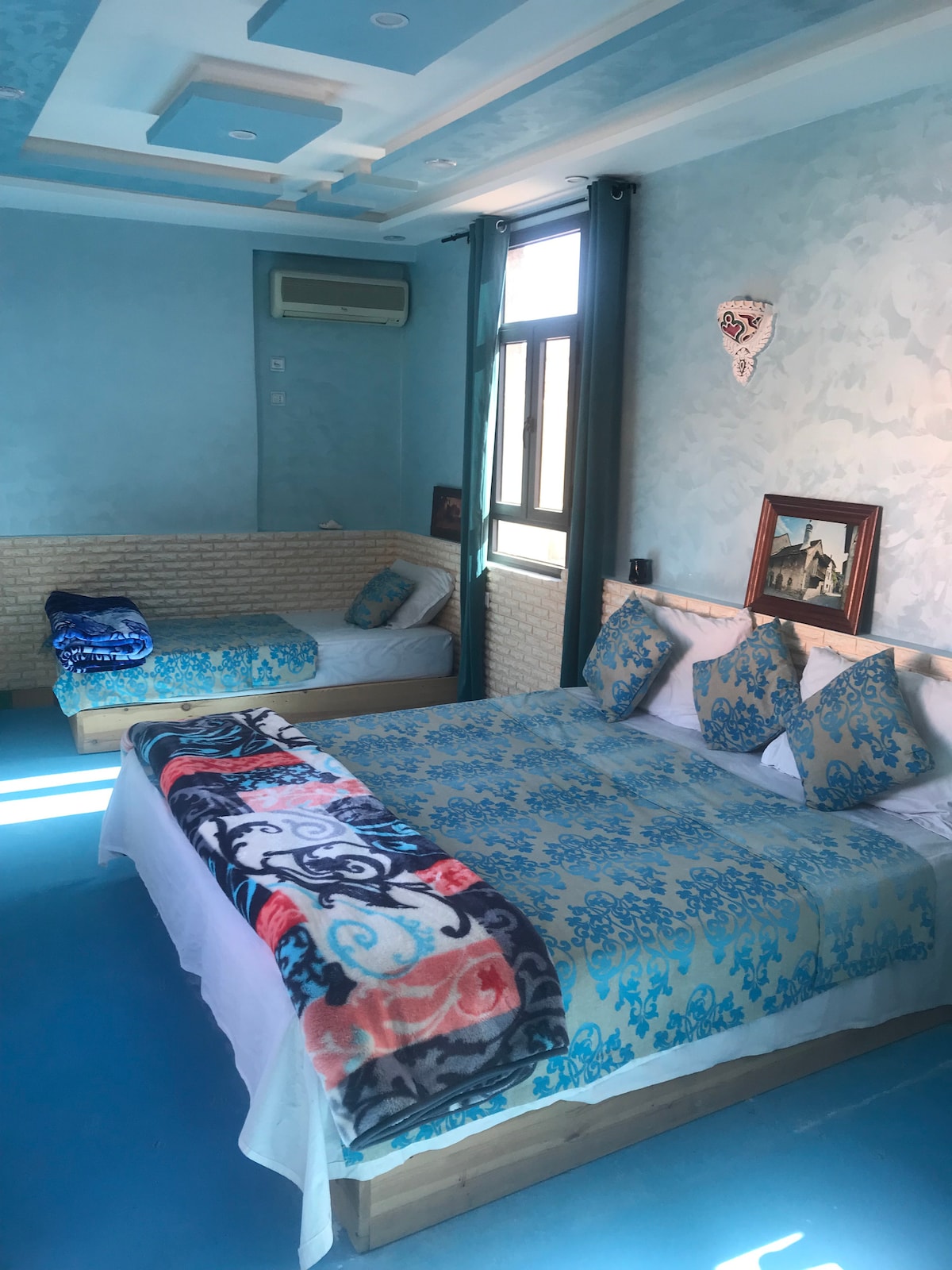 Apartament turcoaz: o cameră de familie privată într-un riad.
