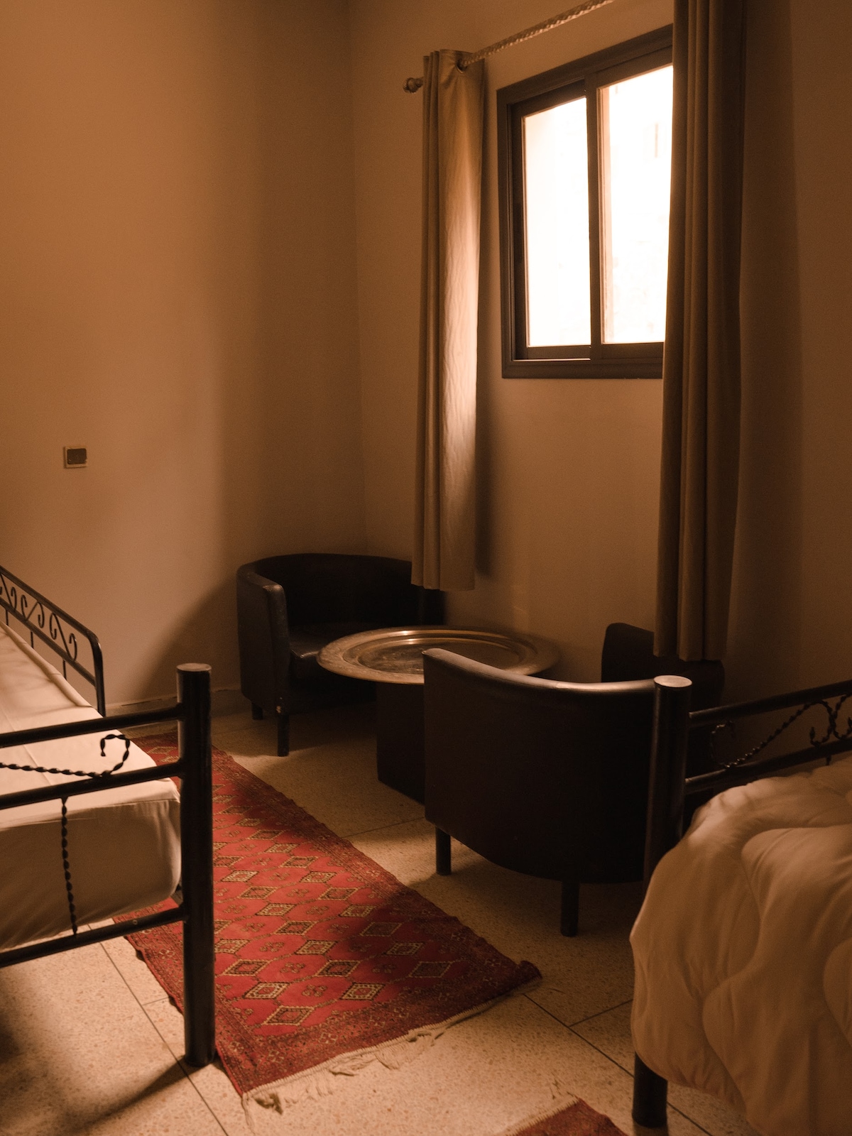 Descoperă Giraffe Hostel în Essaouira! Camerele noastre confortabile, decorul vibrant și terasa de pe acoperiș oferă priveliști uimitoare asupra orașului și oceanului. Lasă-te captivat de ospitalitatea marocană, schimbă povești cu alți călători și explorează farmecul medinei. Bine ai venit în casa ta departe de casă!