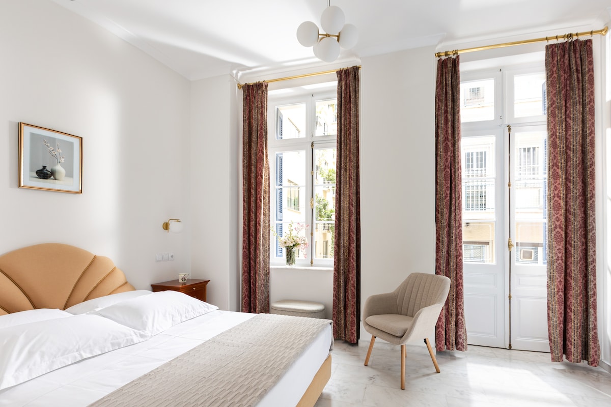 Situată într-o clădire neoclasică din 1930, direct în fața Templului lui Zeus olimpic, această reședință complet renovată este o alegere superbă pentru următoarea ta ședere în Atena. Această bijuterie rezidențială spectaculoasă și spațioasă cu 4 dormitoare/3 băi are, de asemenea, un living cu o canapea extensibilă mare convertibilă, cu o saltea completă, tavane înalte și podele din lemn. O locuință perfect confortabilă pentru 2 până la 8 oaspeți.