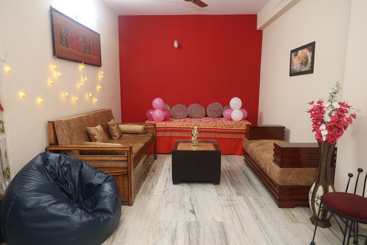 Rezervat exclusiv pentru familii și călători singuri. Nu este disponibil pentru grupuri de prieteni . Te rugăm să nu soliciți rezervarea dacă nu îndeplinești aceste criterii. ★ Locație excelentă - Situat în centrul orașului (lângă AshokNagar pe drumul principal), la doar 8 minute (3 km) de gară și la 15 minute (6 km) de aeroport. ★ Apartament închis cu agent de pază: bucură-te de liniște sufletească non-stop în clădirea noastră cu un paznic dedicat. Include un lift și parcare gratuită pentru o mașină.