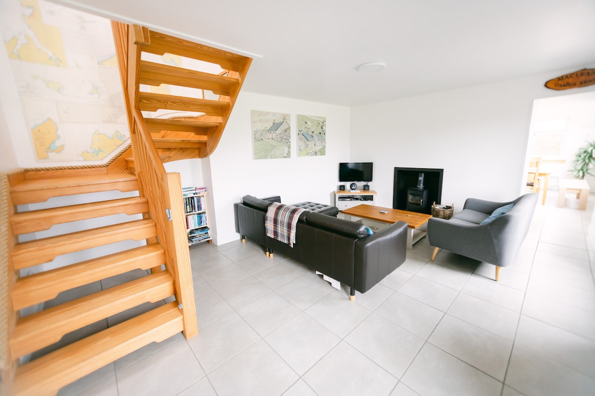 La 6 mile de Stornoway, noua noastră conversie Barn, la o fermă funcțională lângă mare, se află în frumosul sat Aignish. Indiferent dacă stai afară pe balcon sau din confortul camerei de zi în plan deschis cu ferestre catedrale cu înălțime completă, te poți bucura de vederi superbe la mare și apusuri de soare spectaculoase, indiferent de vreme. Bucătărie/zonă de luat masa la etaj, la parter 2 dormitoare confortabile/bine echipate, duble și king, cu pat de o persoană opțional. De asemenea, canapea extensibilă. Capacitate 7 persoane. ES00593P
