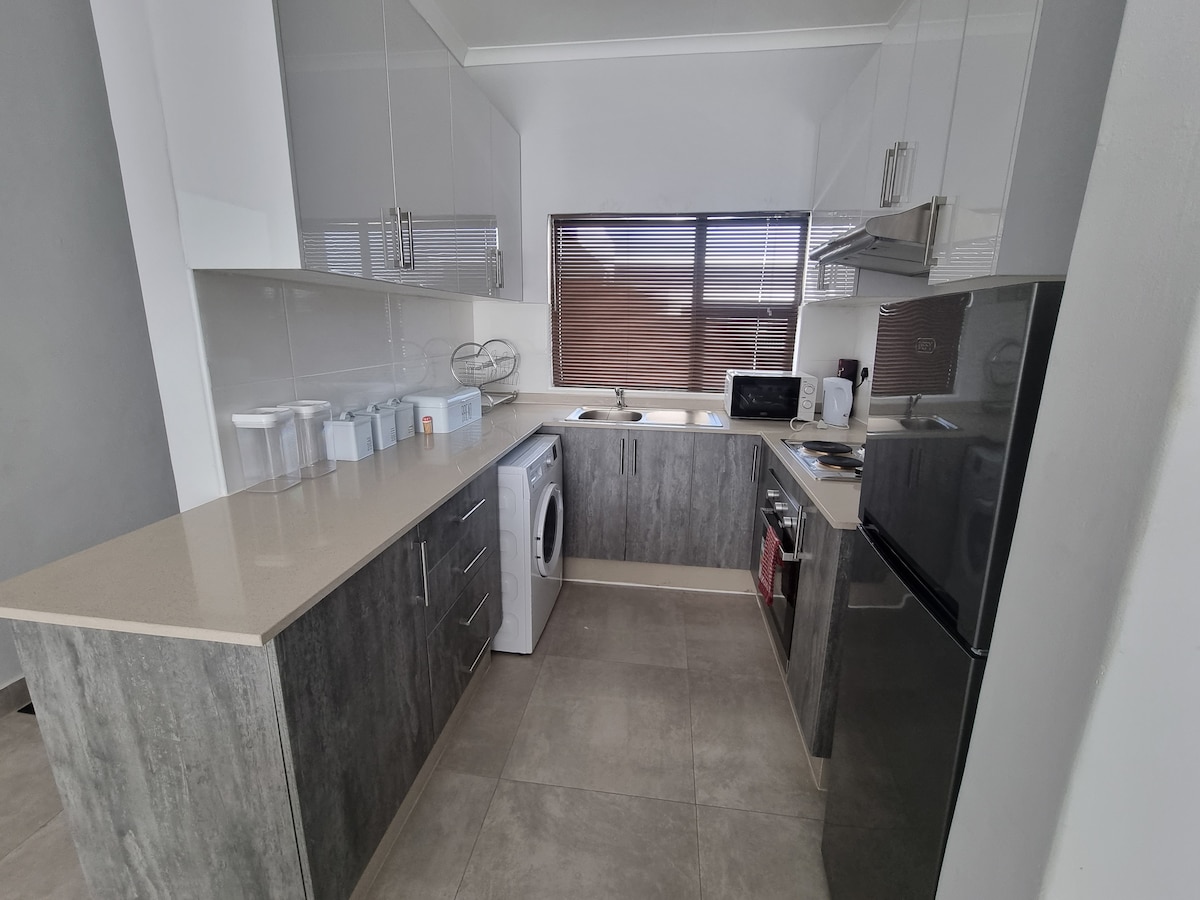 The apartment has 1 bedroom, a smart TV with streaming services, a fully equipped kitchen with an oven, fridge, microwave, air fryer, washing machine and 1 bathroom with a shower. It is air conditioned and the guests can make use of free WiFi and free private parking.For added privacy, the property has a private entrance and is protected by 24/7 security. Situated 6.1 km from GICC, 2.2 km from Game City Mall and 8km from SADC HeadQuarters and 15km from Sir Seretse Khama International Airport.