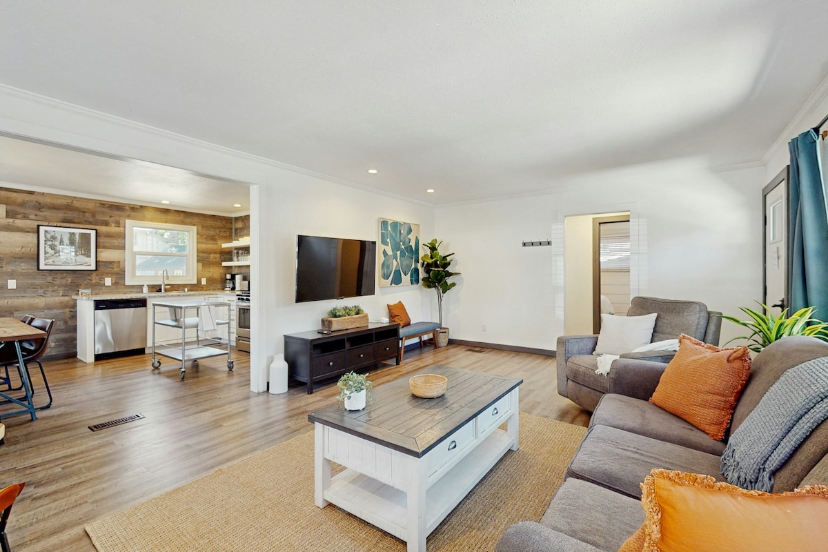 **Fără taxe pentru animale de companie** - Curte securizată, complet împrejmuită Acest bungalou super confortabil se află la mai puțin de 10 minute de mers pe jos de tot ceea ce South Lake Tahoe și Stateline au de oferit. Decorată cu gust, Tahoe clasic. O escapadă perfectă. Configurare pentru lucrul de la distanță cu Wi-Fi de mare viteză și spații de lucru confortabile, inclusiv o curte frumoasă. Paturile și lenjeria de pat sunt de primă clasă pentru a vă asigura că sunteți răsfățați în propriul paradis privat din Tahoe. Teren forestier național și trasee la 2 străzi distanță.
