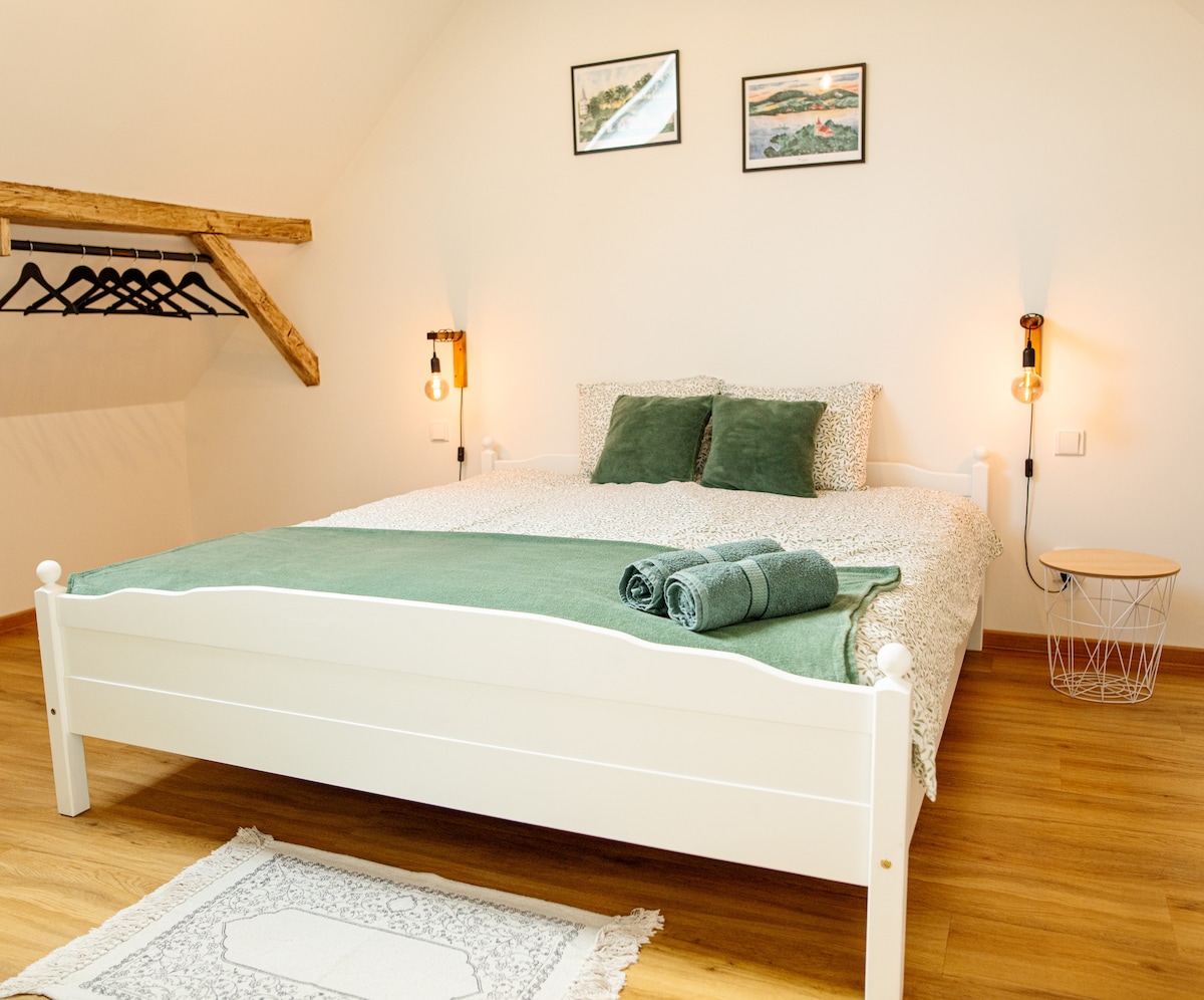O oază de pace în care fiecare detaliu reflectă dragostea pentru viața de familie. Refugiul tău în satul pitoresc Dyje, aproape de istoricul Znojmo, aproape de satele viticole, Podyjí și râul Dyje. Pat dublu confortabil 180x200cm cu o saltea de calitate, un pat suplimentar și un pătuț. O casă complet echipată, cu o curte pavată frumoasă, gata pentru mici și mari. Și întotdeauna ceva în plus, vin și o pivniță de degustare, un tort și chiar ouă de casă și marmeladă. Poți găsi mai multe pe FB și IG @horavindyje.