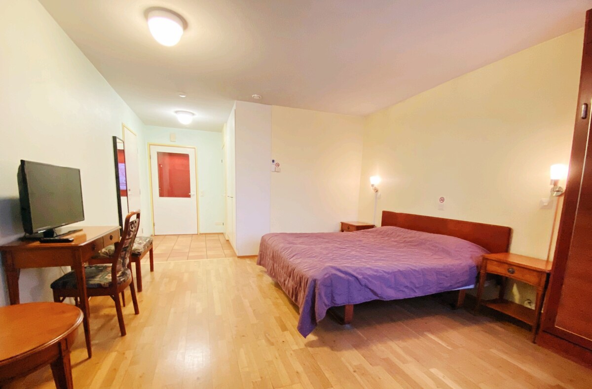 Recent renovat apartament vechi din lemn cu modernitate și tradiție. Apartamentul este unul din cele 6 intr-o proprietate compusa din doua case si o magazie care formeaza sentimentul rural Vaasa dar in centru absolut. Baie proprie si living/bucatarie si dormitor cu pat motorizat (separat sau impreuna) si tv de cea mai buna calitate cu internet, care poate fi usor mutat intre camere. În zonele comune sunt spălătorie și saună cu o terasă în aer liber. Micul dejun cu autoservire este servit în aula.