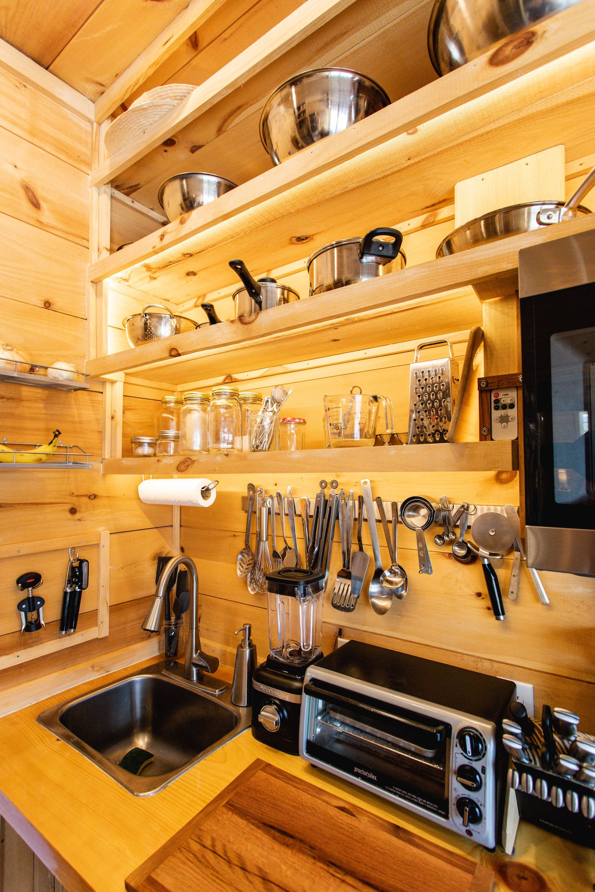 Glass Wall Waterfront Hot Tub Fireplace Tiny Home