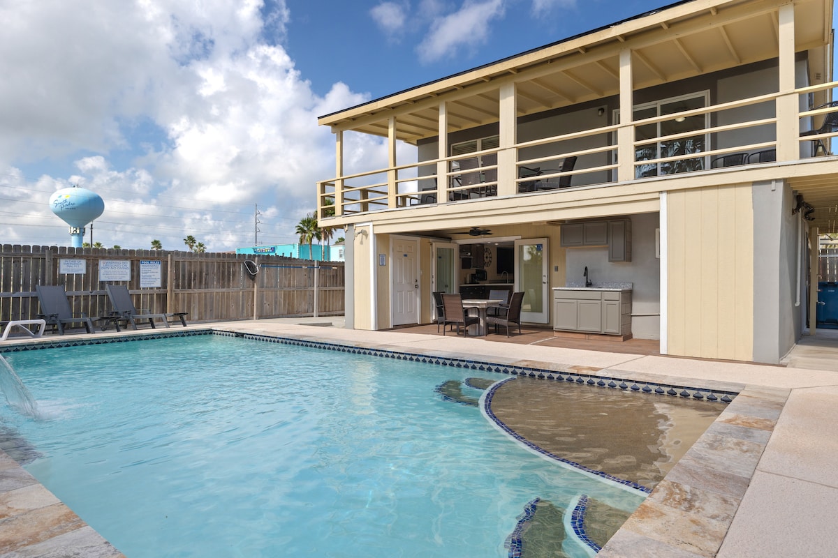 Bine ai venit la evadarea ta perfectă din Insula South Padre! Acest bungalou fermecător de pe coastă oferă luxul rar al unei piscine PRIVATE, NECOMUNE, al unui spațiu elegant de relaxare în aer liber și al unei locații imbatabile — la doar câteva minute de mers pe jos de accesul la plajă nr. 5. Indiferent dacă te îndrepți spre zilele de plajă cu nisip, cina la restaurantele locale preferate sau relaxarea lângă piscină sub luminile de șir, tot ce vrei este la câțiva pași de ușa ta. Nu este necesară nicio mașină. Licență STR nr. 2025-0606.