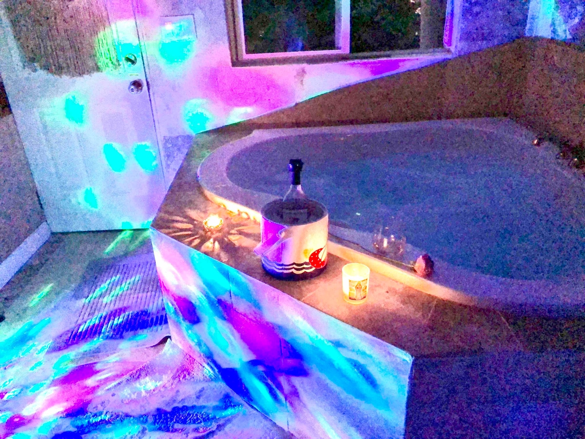 Glamping- Love the outdoors but need pampering? We got what you crave- a bit of luxury while you pretend to rough it. Our freestanding bathhouse has jacuzzi, kitchen, ROKU tv, CD /radio w music library, toilet/sink, an adjacent open air sofa w views to the ocean, Hollywood sign, sunsets. You'll sleep in a solid-roof tent on a rooftop deck. The tent bedroom w/ iron bed frame, queen mattress, feather pillows, cotton sheets, heated mattress pad, & faux fireplace space heater! Soak! Relax! Renew!