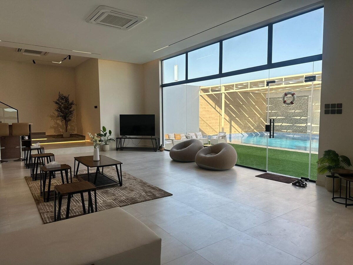 Vilă inteligentă de lux pe malul mării în Durrat Al Bahrain, una dintre cele mai exclusiviste destinații insulare din Regat. Bucură-te de vedere neobstrucționată la mare și de intimitate deplină în acest refugiu spațios, care dispune de 4 dormitoare cu baie proprie, 6,5 băi, două bucătării plus cămară și livinguri elegante. Relaxează-te lângă piscina privată cu vedere la apă — perfectă pentru familii și escapade în grup.
