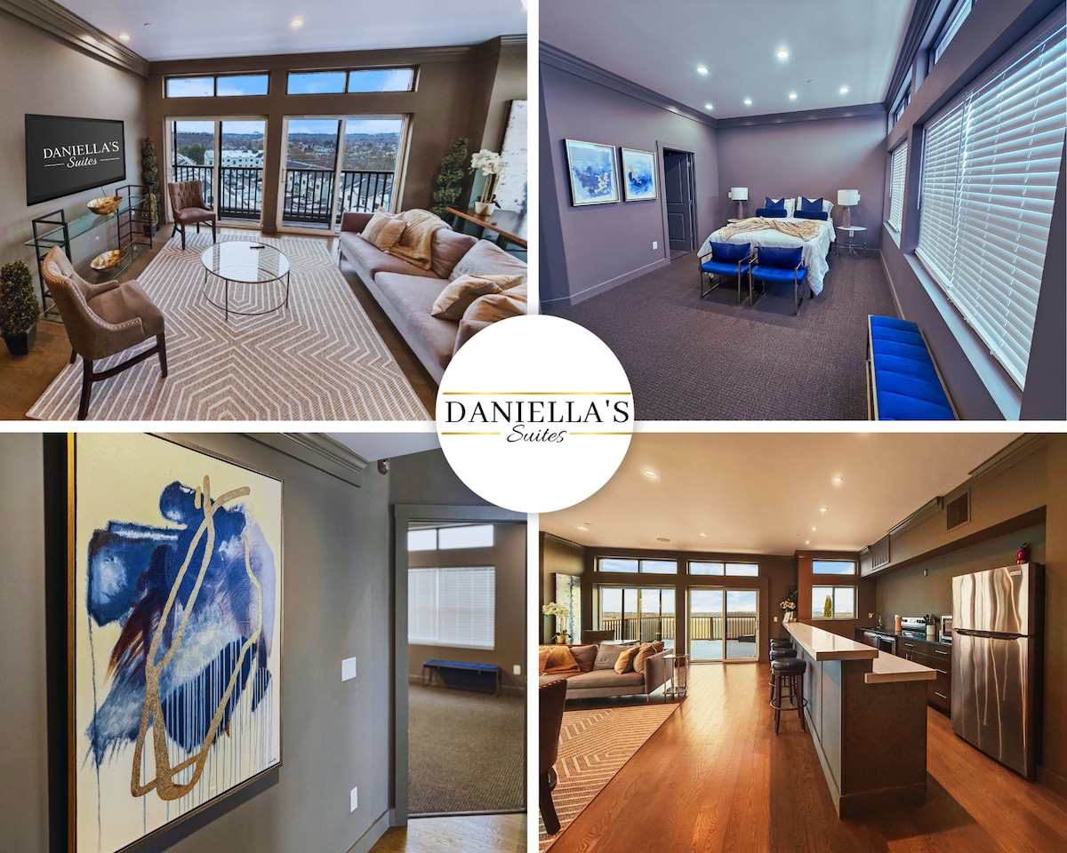 Your luxurious penthouse retreat awaits❄️✨ This beautiful one-bedroom Penthouse boasts sweeping sunset views from a 500 sq. ft. private balcony, floor-to-ceiling windows, and soaring 9’ ceilings. Designed with upscale finishes and a warm, residential ambiance, it’s a stylish retreat ideal for both short getaways and extended stays! 👣 Walk to Northshore Mall, Lifetime Athletic Club & dining 🎃 10-min drive to downtown Salem 🏥 4-min drive to Lahey Medical Center