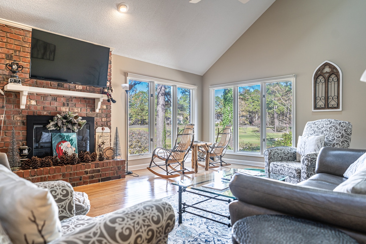 🏡 Evadează în acest refugiu spațios din Pinehurst, perfect pentru reuniuni de familie, escapade de golf și vacanțe relaxante într-o comunitate liniștită. Bucură-te de 6 dormitoare, o sală de jocuri cu masă de biliard, 2 șeminee, o bucătărie complet utilată și o curte privată cu vatră și zonă de luat masa. În plus, o sală de gimnastică, garaj și zonă de spălătorie pentru confortul tău. La doar câteva minute de terenuri de golf de top, trasee pitorești și magazine fermecătoare. Rezervă acum pentru cea mai bună ședere în Pinehurst! ⛳🔥