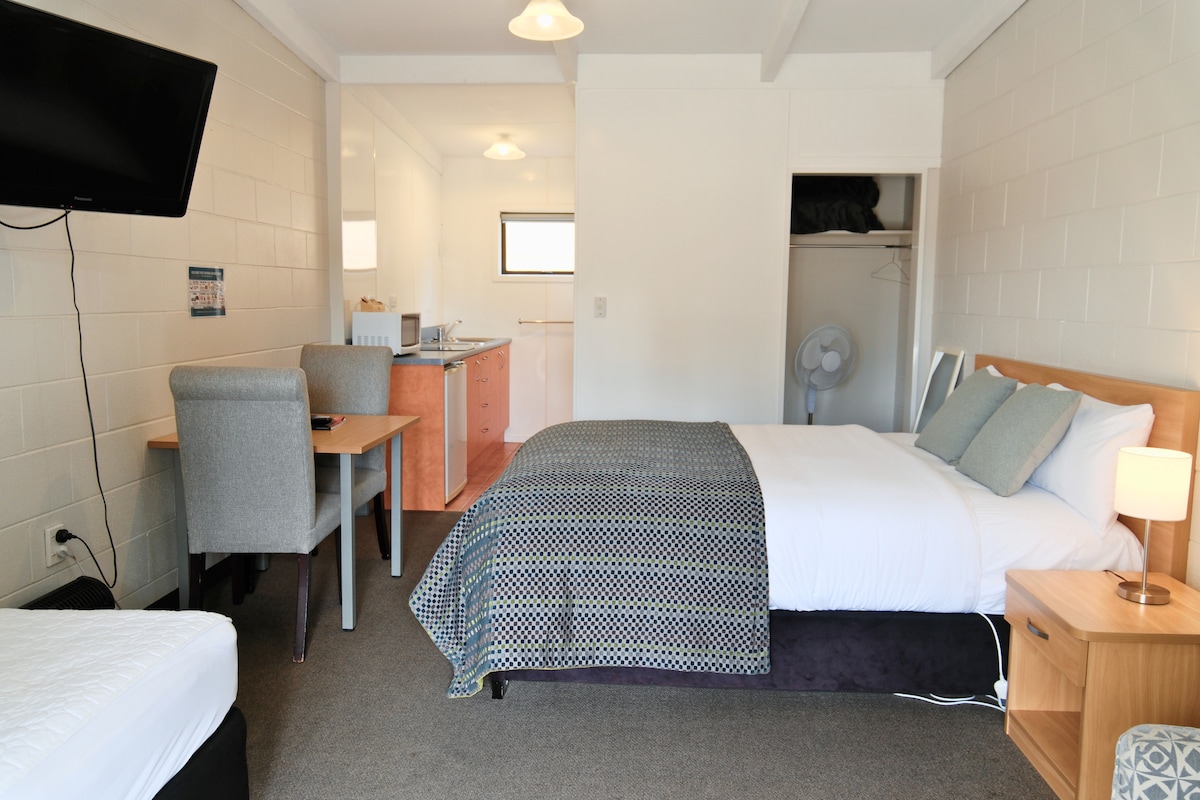 Enjoy a relaxing stay in this Standard Studio at Mt Aspiring Holiday Park. Featuring one double bed and one single bed, it comfortably accommodates up to 3 guests. The studio includes a private bathroom and a fully equipped kitchen for easy self-catering. Surrounded by mountain views and fresh alpine air, just 3 minutes to Roys Peak and 5 minutes to Wanaka town centre—perfect for a peaceful getaway.