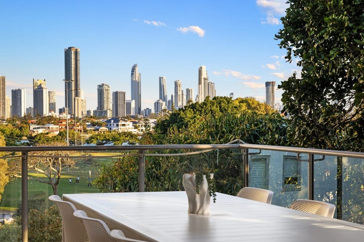 Vedere minunată și o locație centrală!! Relaxează-te pe balconul mare, în timp ce admiri priveliștea uimitoare a Broadwater & Ocean; atât de ușor de văzut cum trece lumea. Acesta este un apartament inteligent, spațios, în care o familie se poate întinde după ce se bucură de numeroasele activități din apropiere - bucurați-vă de o plimbare, o plimbare cu bicicleta în parcurile Broadwater. Sau luați un tramvai de la stația de jos și ajungeți aproape de plaje, cafenele și magazine. Foarte convenabil!!!