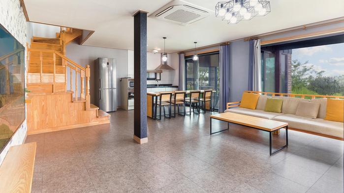 Cum respiri? Situată în pădurea de chiparoși din Dangjin, HOWSOOM este o unitate de cazare unde poți respira fericit în natură. Oferă un cadru ideal pentru a crea amintiri speciale cu familia sau prietenii. Hausum este o cazare cu design elegant, care se îmbină cu natura și este un loc pentru a ușura oboseala cu aerul curat al unei păduri de chiparoși. Casa are 3 dormitoare, 2 băi și te poți relaxa pe deplin în banda de alergare de la etajul al doilea. În plus, zona spațioasă de terasă și terasa îți permit să te relaxezi cu vedere la pădure. Livingul este proiectat cu o înălțime de două etaje, astfel încât deschiderea este atractivă. Ferestrele mari proiectate îți permit să simți peisajul pădurii chiar și în casă, iar lumina naturală se revarsă, permițându-ți să simți o atmosferă luminoasă și aerisită. Experimentează o relaxare relaxată în Hausum, în frumoasa pădure Dangjin.