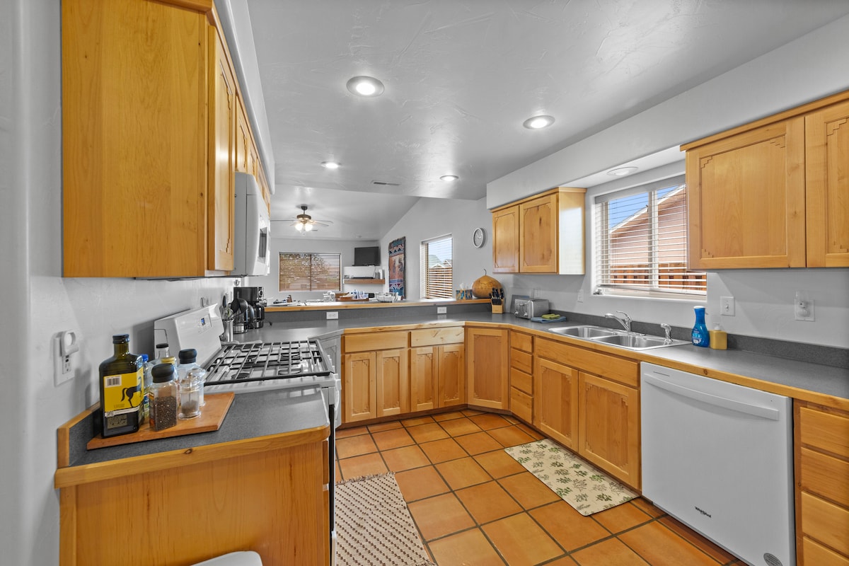 Levi's Landing este o casă luminoasă, modernă, cu 3 dormitoare și 2,5 băi, în inima orașului Moab, concepută pentru confort după o zi de aventură. Oaspeții noștri adoră aspectul spațios, Wi-Fi rapid, parcare securizată pentru echipamente și remorci și acces la o piscină sezonieră și la o cadă cu hidromasaj și la un teren de tenis la doar câțiva pași. Indiferent dacă faci drumeții în Arches, off-road sau urmărești apusuri de soare roșii, aceasta este o bază ușoară, fără stres.