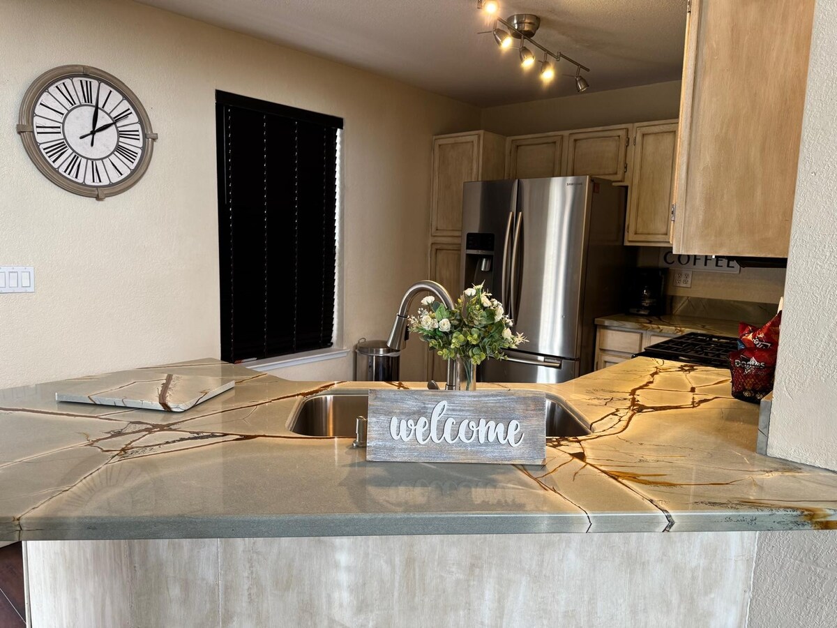 Lucrează aici. Rămâi aici. Joacă aici. Descoperă refugiul perfect în Spanish Springs! Locuința noastră situată central oferă acces facil la frumusețea munților, lacurilor și centrului orașului Sparks. Răsfață-te cu o bucătărie complet aprovizionată, cu electrocasnice majore, friteuză, cafetieră și aparat de gheață. Alimentați cu bunătăți pentru micul dejun, băuturi proteice și gustări ușoare. Bucură-te de confort cu încărcătoare de telefon, WIFI, jocuri de societate și 3 televizoare echipate cu Roku pentru streaming fără probleme. Confortul tău, prioritatea noastră.