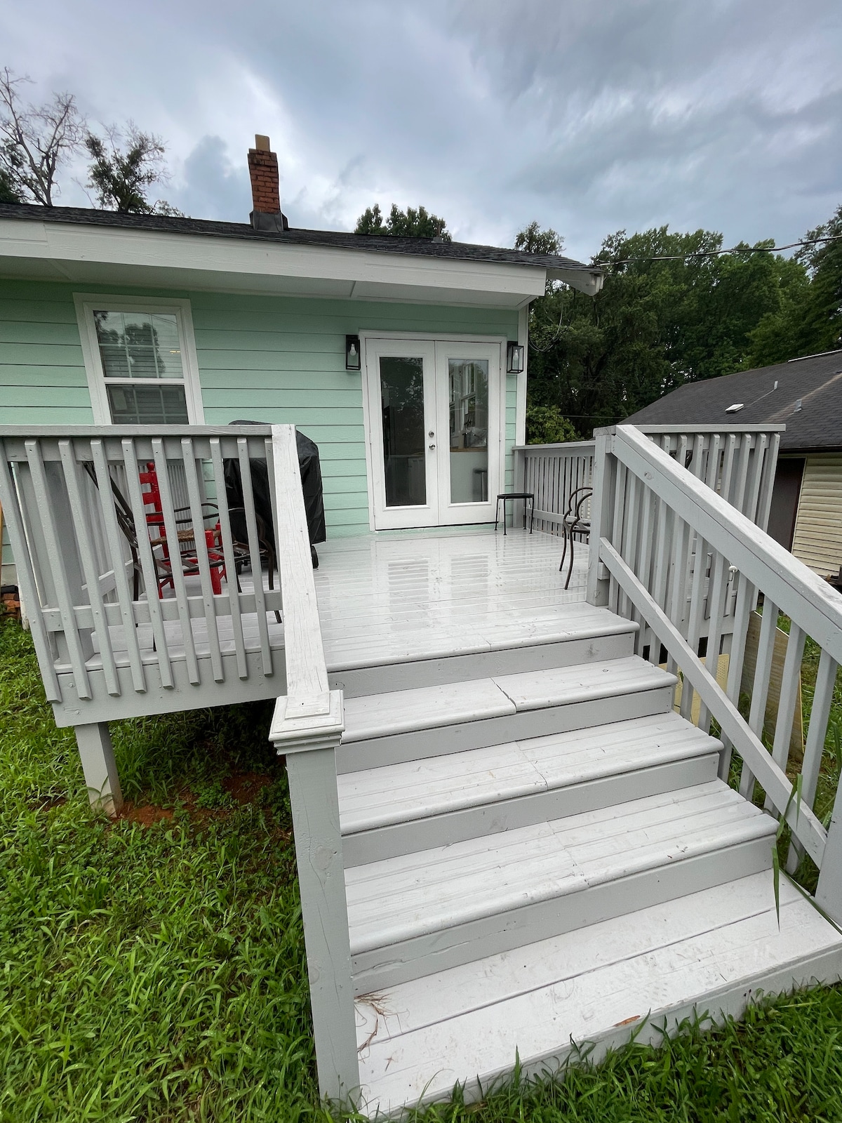 Situată într-un complex închis de peste 3 acri, înconjurat pe trei laturi de Fairforest Creek, casa noastră de oaspeți se simte ca o ascunzătoare de munte, dar este la doar 3 minute de mers cu mașina de centrul orașului Spartanburg. Bucură-te de terasa privată cu vedere la pârâu pentru a te relaxa sau pentru a pregăti o masă pe grătarul cu gaz. Câinii sunt bineveniți și avem 2 câini foarte sociabili pe care probabil îi vei întâlni în timpul șederii. Există o parcare amplă pentru vehicule și spațiu pentru a vă plimba și a vă bucura de decorul asemănător parcului.