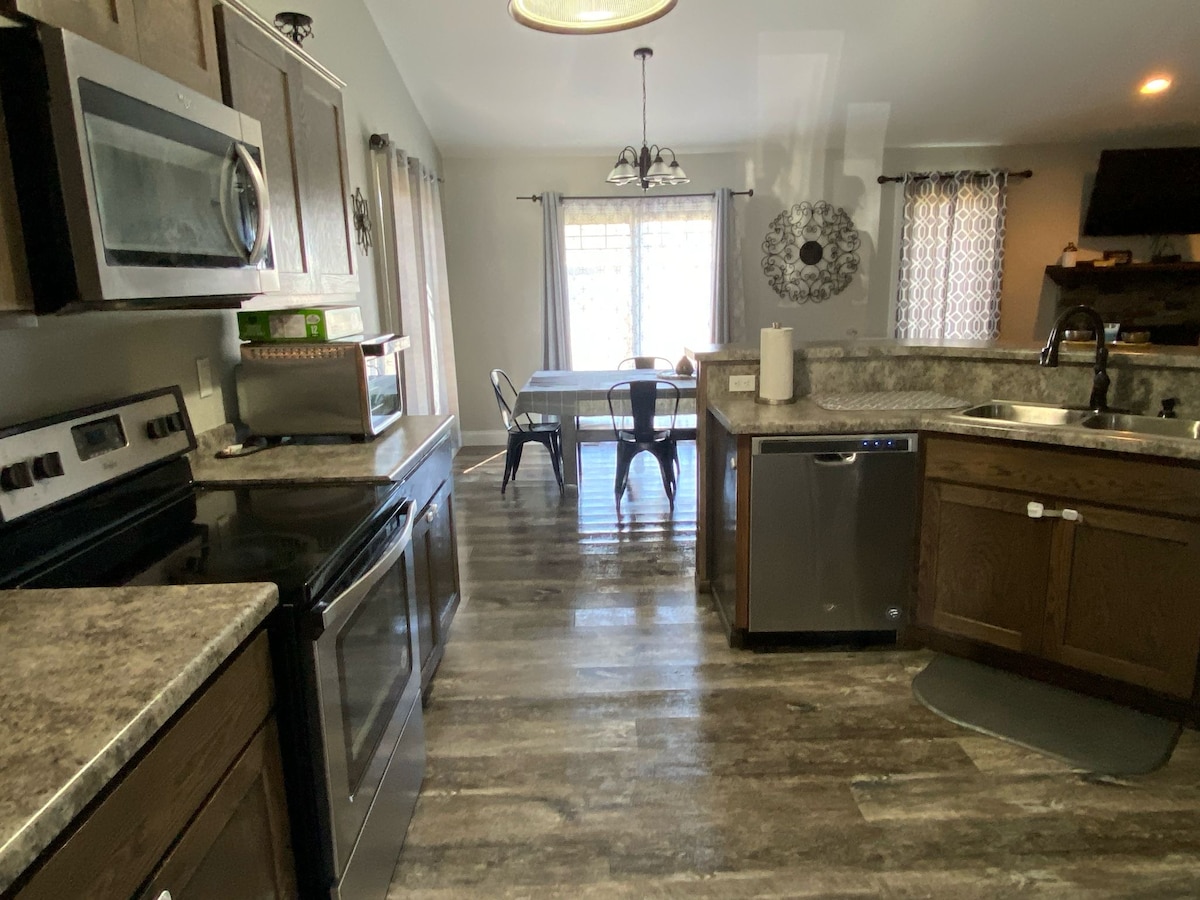 Bucură-te de o ședere modernă și curată la această locuință confortabilă, la mai puțin de 1,6 km sud de inima orașului Dodge. Bucură-te de cafenea, uscător automat de rufe, Wi-Fi, zonă de birou, împrejmuită în curtea din față și din spate și parcare în afara străzii de pe strada plină de viață.