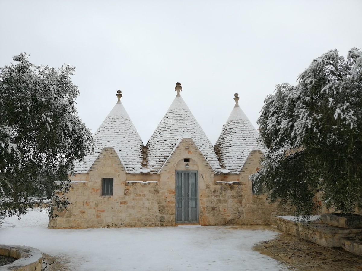 Trulli cufundat în inima Văii Itria. Acestea au o piscină (comună) și hidromasaj. Proprietatea are un dormitor dublu, un living foarte spațios cu o canapea extensibilă dublă atașată, o baie completă și o bucătărie utilată. Afară există o verandă cu foișor, grădină, grătar și parcare. La câțiva kilometri distanță veți găsi destinații foarte râvnite (Ostuni, Cisternino,Alberobello,Locorotondo,Martina Franca, plajele Ostuni, Torre Canne și Monopoli)