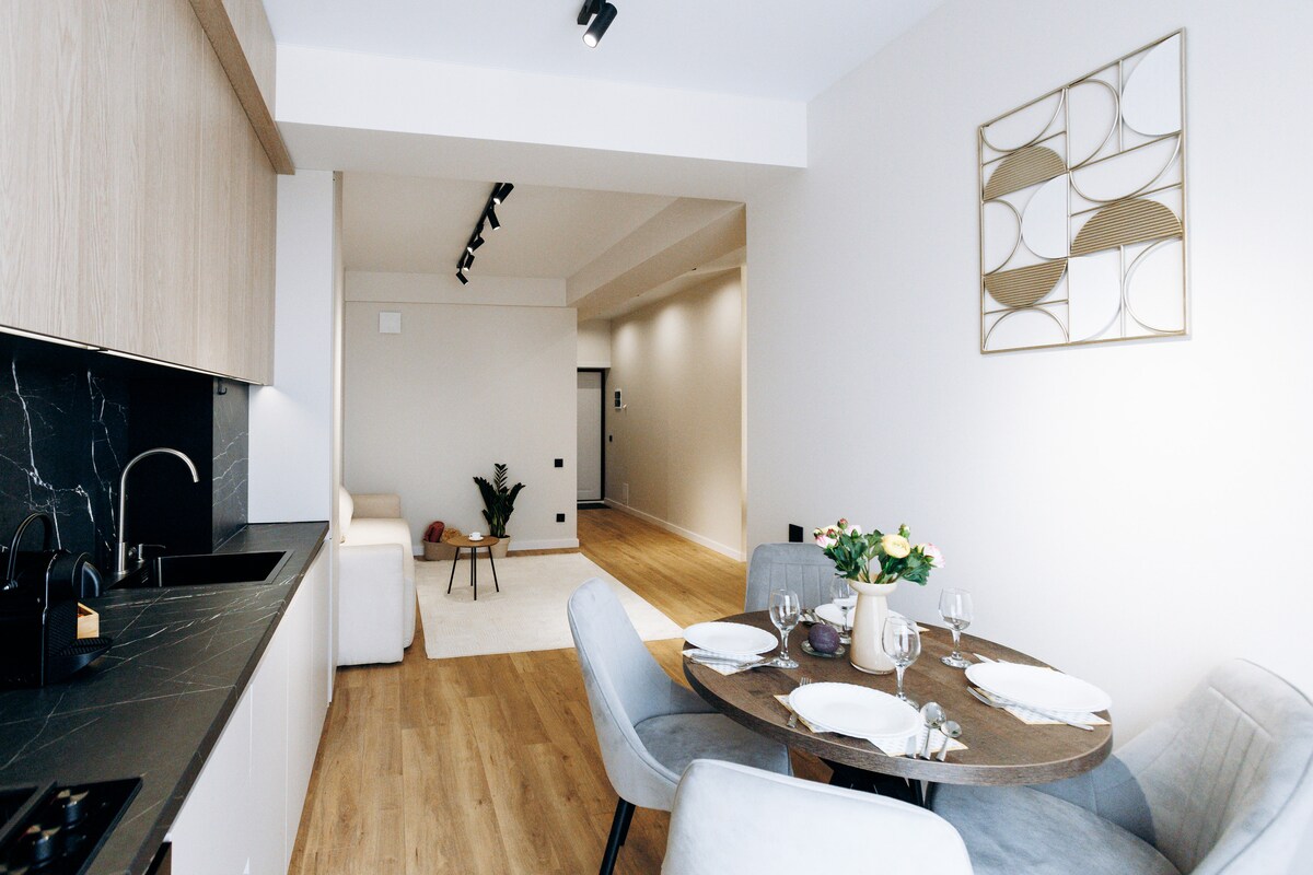 Newly Renovated & Modern! Be the First Guest! Experience a stylish stay in the very heart of the city. Located just a 5-minute walk from the Cathedral, the main pedestrian street, the central park, and the Great National Assembly Square. This is a full one-bedroom apartment featuring a separate, fully equipped kitchen. - Enjoy a massive King Size bed for a perfect night's sleep. - Dedicated workspace with high-speed Wi-Fi and a stable Ethernet (LAN) connection, ideal for remote work.