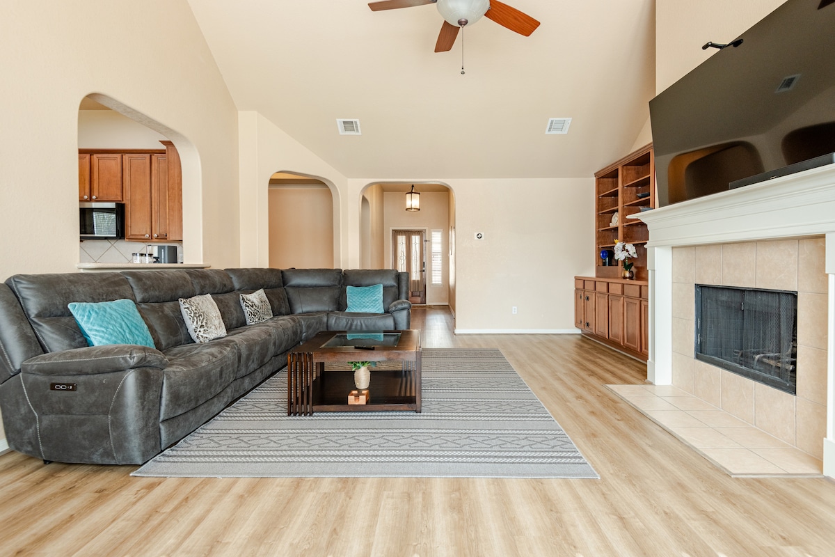 Această locuință spațioasă de 1.900 mp găzduiește confortabil până la 7 oaspeți, perfect pentru șederi de vacanță, afaceri sau medicale. Relaxează-te cu o cafea de dimineață pe terasa deschisă, ocupă-te de muncă în biroul spațios sau bucură-te de o plimbare liniștită prin cartierul nostru liniștit. Îți va plăcea locația convenabilă din apropiere de I-45, Aeroportul George Bush, The Woodlands Waterway, restaurante, parcuri și o mulțime de activități locale. Sunt atât de multe de făcut în apropiere și suntem întotdeauna bucuroși să îți oferim recomandări!