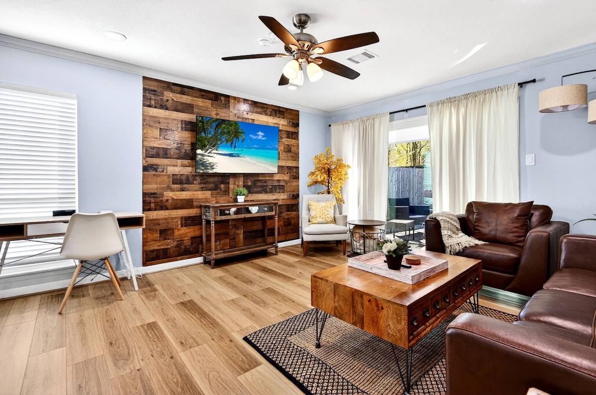 Această locuință spațioasă de 1.900 mp găzduiește confortabil până la 7 oaspeți, perfect pentru șederi de vacanță, afaceri sau medicale. Relaxează-te cu o cafea de dimineață pe terasa deschisă, ocupă-te de muncă în biroul spațios sau bucură-te de o plimbare liniștită prin cartierul nostru liniștit. Îți va plăcea locația convenabilă din apropiere de I-45, Aeroportul George Bush, The Woodlands Waterway, restaurante, parcuri și o mulțime de activități locale. Sunt atât de multe de făcut în apropiere și suntem întotdeauna bucuroși să îți oferim recomandări!