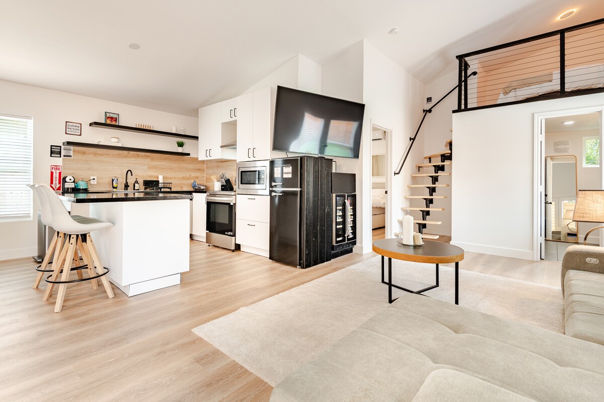 Welcome to The Garage-- A one of a kind, super private, super spacious barn-style tiny home! At 400 Sf, you'll get the same comfort & amenities you would from a big home while being able to tell your friends you stayed in a tiny one! Here for work? Only 3 blocks from I-45 & HYPER fast wifi gives you access to the interwebs or the interstate so you can work efficiently. Here to AVOID work? Me too! Enjoy a romantic sunset from our cozy patio or a nice beverage in our bubbling hot tub!
