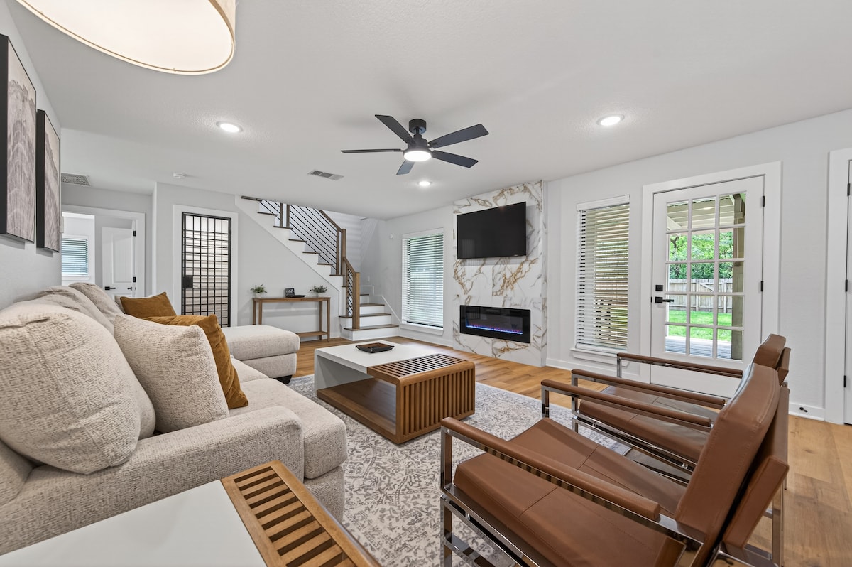 **Just a short 5-minute stroll brings you to the heart of historic Old Town Spring**, where you’ll find delightful restaurants, charming boutiques, and one-of-a-kind shops. Our unique retreat offers exclusive access to a scenic, stocked pond, ideal for catch-and-release fishing. Unwind on the spacious porch, taking in water views. Now with a whole-home battery backup, you’ll stay powered through storms and outages!! Perfect for families, friends, or furry companions.
