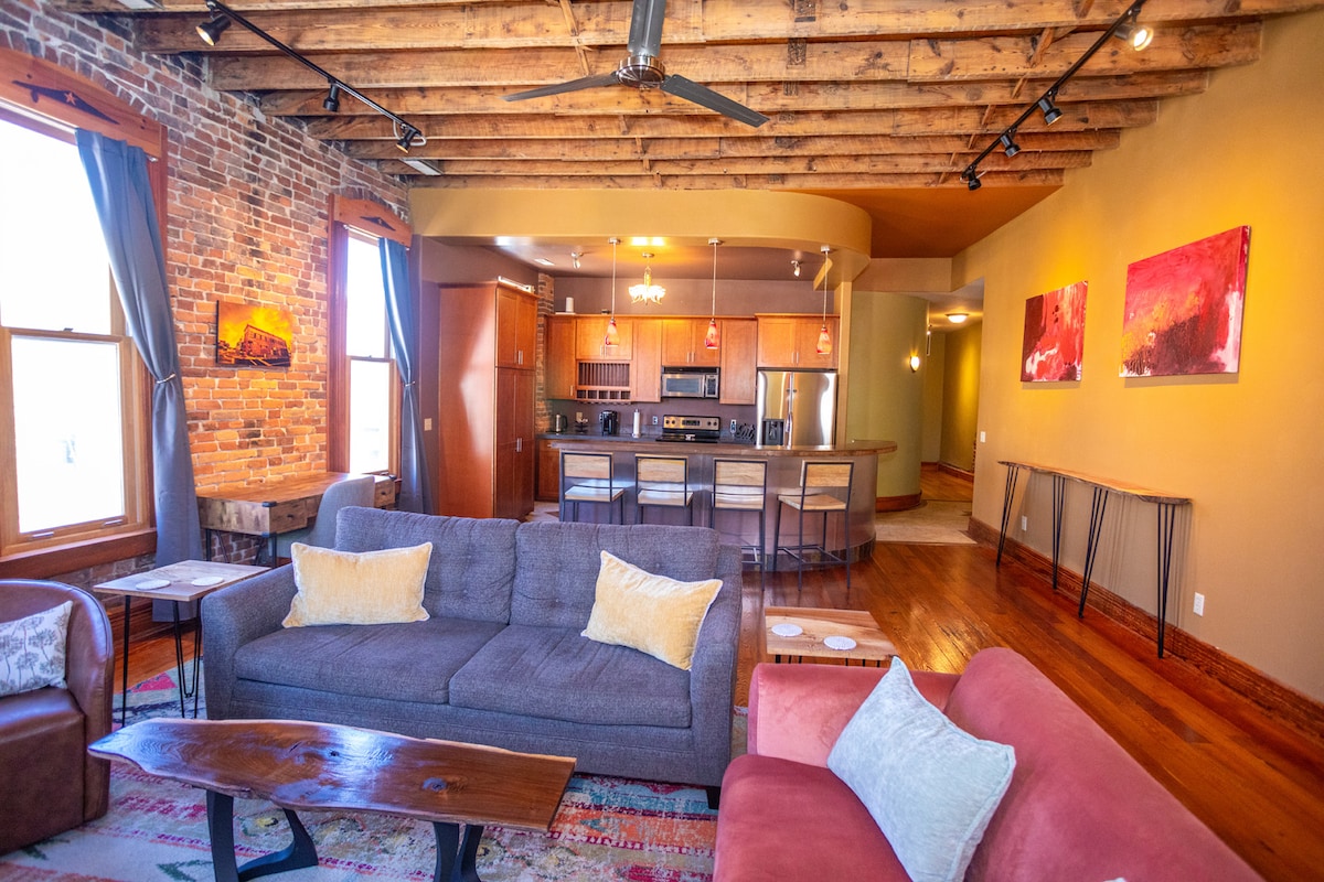 Beeman 's Loft îți oferă o priveliște asupra priveliștii de la mijlocul secolului asupra istoricului Springfield. Acest spațiu de locuit cu două dormitoare include o terasă privată perfect potrivită pentru o seară de apus de soare urbană, inclusiv grătar și chiminea. Beeman 's se află la câțiva pași de saloane și mese, inclusiv de unele dintre mâncărurile preferate ale consilierilor de călătorie! Cu o senzație modernă, acest loft include un duș și o cadă cu jet, bucătărie completă pentru divertisment și spațiu pentru o noapte minunată pe strada istorică C.