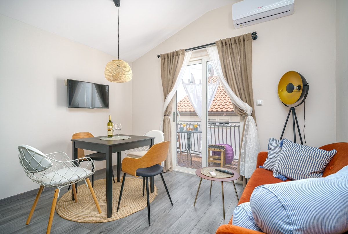 My studio apartment is near Skradin, town with restaurants, beach and public transport. National park Krka and Prokljan lake is 2 km away and easy to reach. Highway is 2 km away and the closest airport is 30 km away. You will like my place because of the beautiful nature, the view, the location and the coziness. The environment is very quiet and calm. My place is good for couples, solo adventurers, business travelers and families.