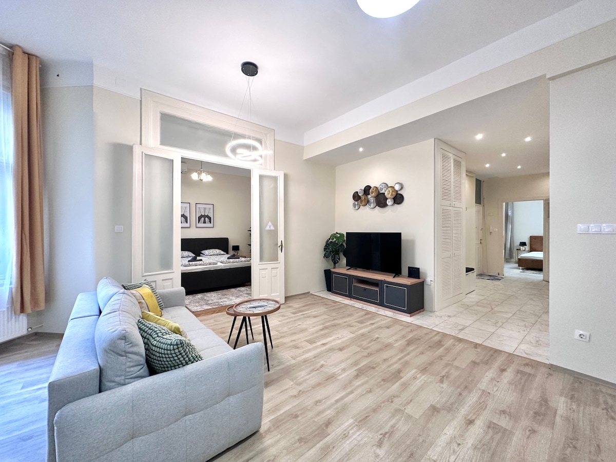 Adesea folosit ca un clișeu, dar atât de adevărat aici: acesta este un apartament unic în centrul absolut, care îți oferă un sejur cu adevărat uimitor în Budapesta. Poți trăi aici ca un om de afaceri modern, asemănător celor care au populat aceste apartamente ca al nostru cu tavanul lor foarte înalt și cu spațiul spațios de lux de la începutul secolului XX. Apogeul Budapestei și al Europei, când Art Deco sau rivalul său contemporan, Bauhaus, a fost la modă, iar acest apartament ultra high-end își amintește de numeroasele sale elemente.
