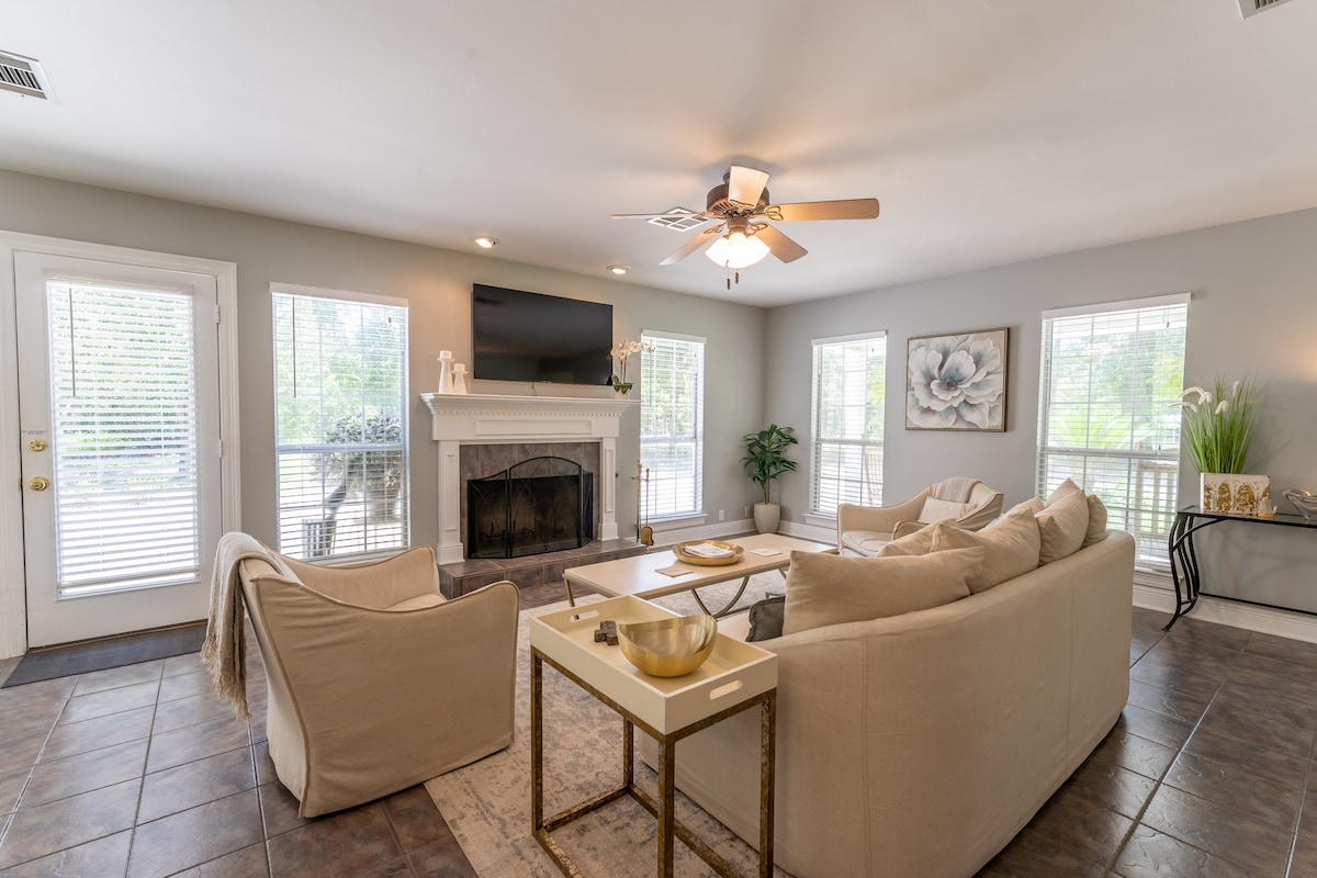 Descoperă ce e mai bun din ambele lumi: lux și relaxare, la aproximativ 30 de minute de New Orleans și de Coasta Golfului. Locuința noastră 5BR Slidell are o casă principală, casă de oaspeți, teren de baschet complet, bucătărie de bucătar și terasă uimitoare în aer liber cu grătar. Perfect pentru grupuri mari și familii. Vino să experimentezi amestecul perfect de lux, confort și distracție.