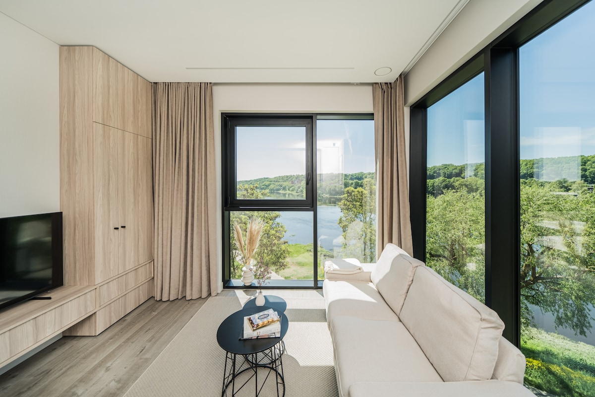 Bine ai venit în apartamentele noastre nou-nouțe cu 2 camere, care sunt situate convenabil la doar 1,7 km de Arena Žalgiris, la 2,3 km de centrul orașului Kaunas și la 1,1 km de gara centrală. Designul interior a fost conceput în colaborare cu un studio de design, asigurând o atmosferă confortabilă, caldă și relaxantă, împreună cu o priveliște a râului Nemunas în timp ce soarele apune. Așteptăm cu nerăbdare să îți facem șederea plăcută!