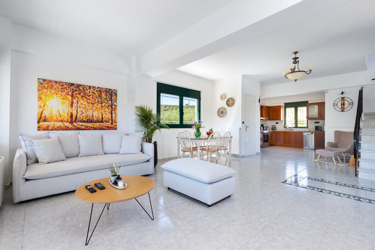 Vila Giannari este ideală pentru vacanțe de familie sau grupuri de prieteni. Este la doar o respirație distanță de plaja Stalos, înconjurată de livezi de măslini, cu vegetație luxuriantă și vedere la mare. Vila are o grădină, terasă, zonă de grătar cu multe facilități și un cuptor tradițional cu lemne. De asemenea, oferă o zonă spațioasă de luat masa în aer liber, Wi-Fi gratuit în întreaga proprietate și parcare privată gratuită. Un loc ideal pentru petrecerea timpului liber și relaxare!