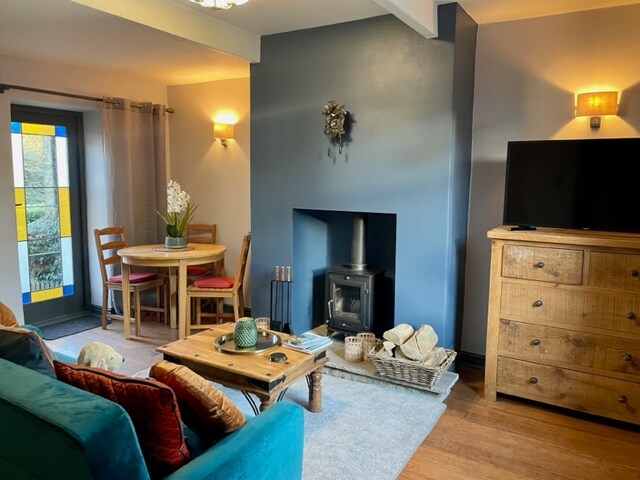 Aceasta este o mică ascunzătoare romantică. Cu propria intrare și scaune exterioare minunate. Salteaua este de cea mai bună calitate. Există living/ bucătărie mică, care este suficient de mare pentru a pregăti mâncarea și are tot ce ai nevoie - frigider, plită, friteuză, cuptor cu microunde, prăjitor de pâine și ceainic. Pub-ul de peste drum servește mâncare și bere minunate și are atmosferă. Priveliști minunate și mers pe jos minunat. Aragaz pe lemne în dormitor. Iubim oamenii și te vom ajuta cu plăcere, dar îți vom respecta intimitatea.