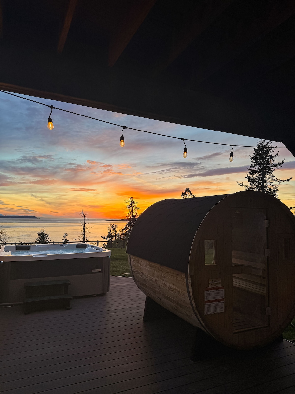 Refugiu pe insula Whidbey, priveliște, cadă cu hidromasaj, saună, vehicul electric