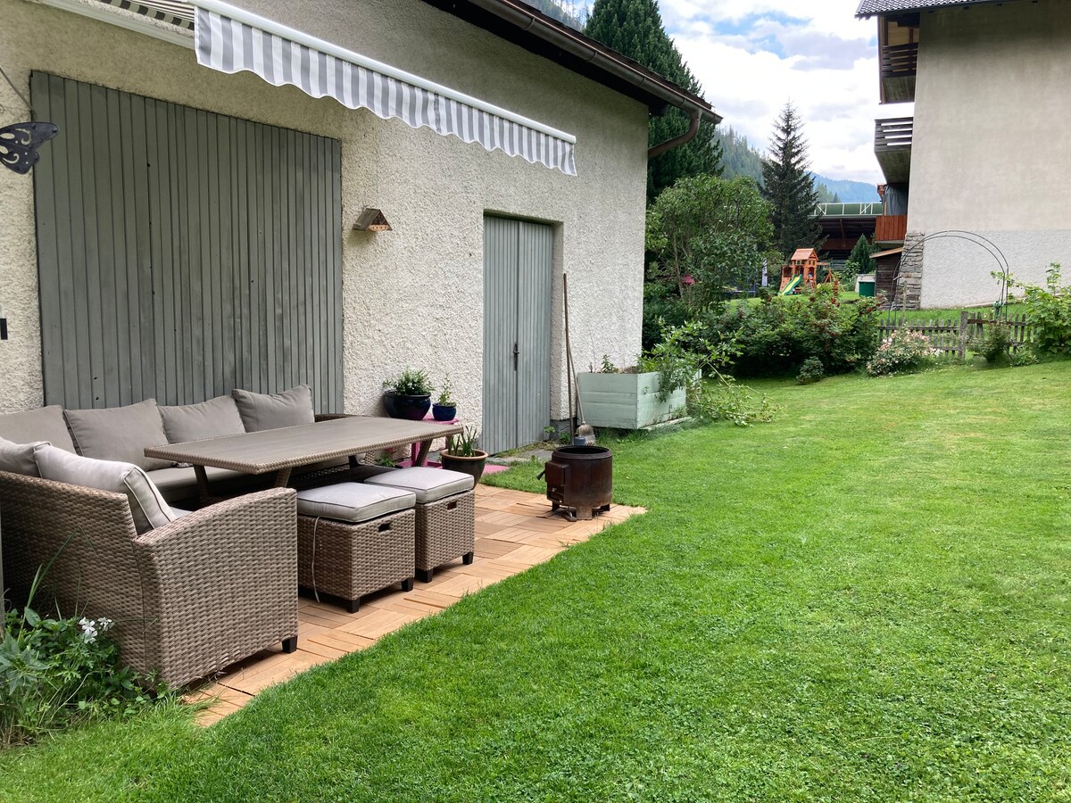 Apartament în stil vintage pentru 2-4 persoane, la primul etaj al unei vile renovate de la începutul secolului. Complet echipat cu bucătărie, baie, toaletă, dormitor, zonă de relaxare confortabilă, Wi-Fi, TV prin cablu, parcare, cameră de schi, câini bineveniți, paturi suplimentare posibile. În sezonul de vârf, oferim, în general, apartamentele noastre numai săptămânal. Dacă te interesează șederi mai scurte, te rugăm să ne contactezi. Ocazional, sunt posibile și rezervări mai scurte!