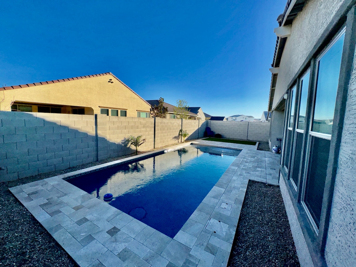 Family friendly Entertaining Home; Large covered patio with plenty of seating, fire table, Treager grill, 10ft private heated pool Oct-May (included). Fully stocked chefs kitchen- double ovens, gas cooktop. Comfy beds, smart TVs in all bdrm’s . Baby/kid items. A perfect location for your Arizona getaway. Only 0.8 miles from the State Farm Stadium, Desert Diamond, Westgate, restaurants and adventures avoid traffic walk to your event! Weekly/Monthly discounts. Essentials for your stay provided.
