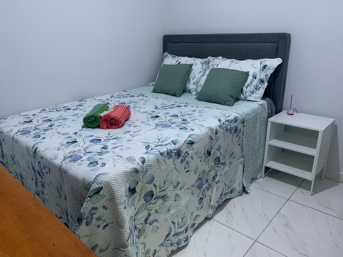 Treci prin Campo Grande și cauți un loc sigur și confortabil pentru a petrece o noapte sau cam așa ceva? Vino să vezi apartamentul nostru, situat într-o vilă cu dormitor, cu o grădină minunată în curtea centrală. Suită cu două paturi de o persoană pe care le putem uni, baie privată, TV, Wi-Fi și aer condiționat. Locație centrală: cu mașina la 15 minute de aeroport, la 15 minute de UfMS și la 10 minute de mers pe jos de grădina forestieră, la 15 minute de Piața Municipală și la 10 minute de Shopping Norte Sul.