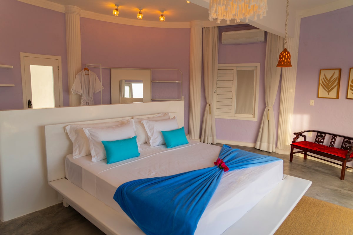 Fique à vontade com conforto na Suíte Pé na Areia nossa joia do hotel. Oferece vista deslumbrante para a piscina e o oceano. Ampla, sofisticada e confortável, é ideal para casais exigentes que buscam uma experiência inesquecível. O ambiente combina design autoral e enxoval premium. No Pé na Areia Boutique Hotel, cada amanhecer é um convite a viver o melhor da hospitalidade, entre o mar, o farol e a tranquilidade de Japaratinga.