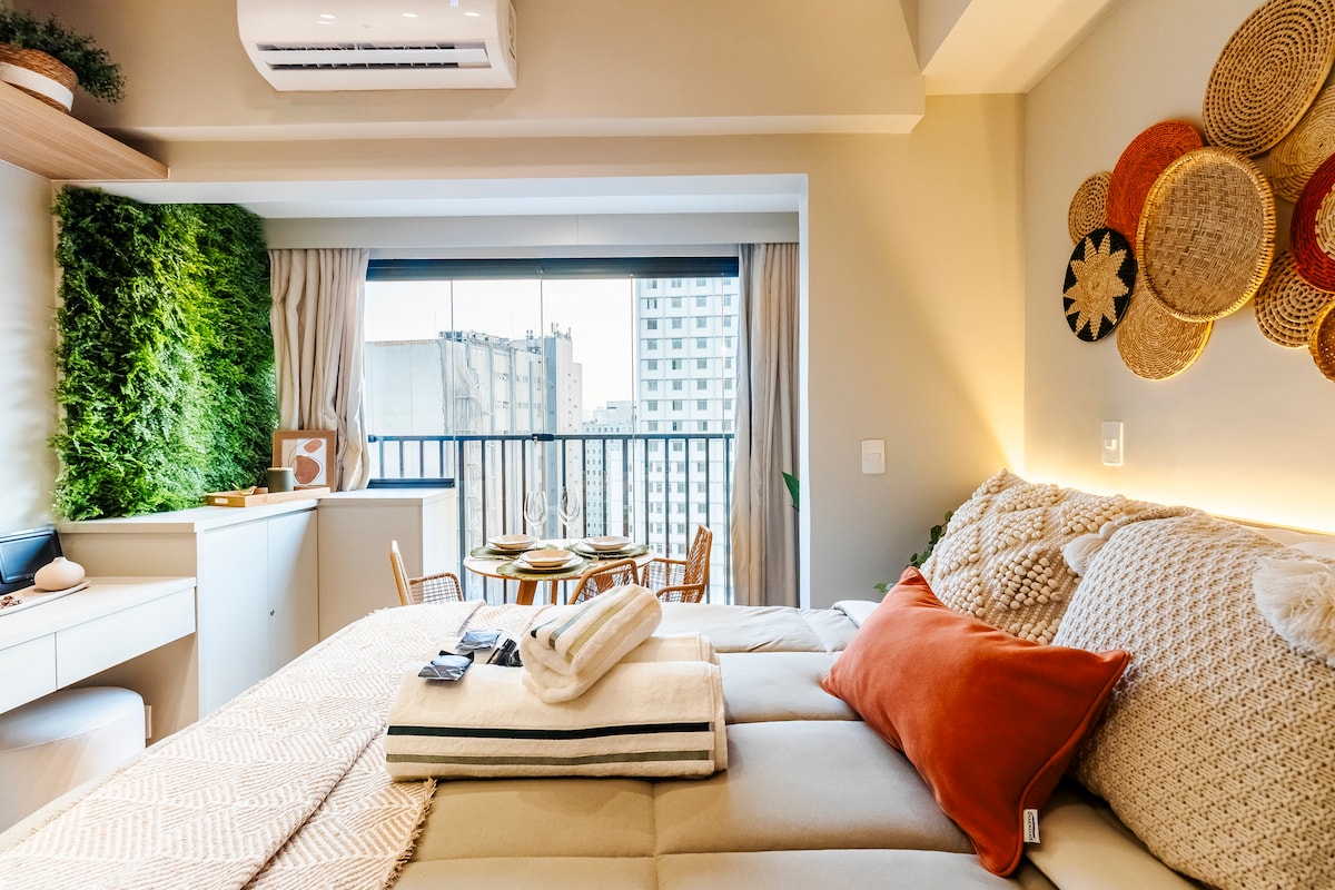 Deschide ușa și intră... „Uh uh, que beleza” în inima junglei de beton. Verdele și atmosfera confortabilă dezvăluie ritmul brazilian al acestui refugiu. Fiecare colț te invită să simți, să visezi și să te lași inspirat de sunetele clasicii braziliene pe vinil. Acesta este locul tău, pentru muncă sau pentru a experimenta São Paulo, pentru că există dragoste în SP. Casa pulsează de viață, cu prospețimea plantelor, poezia cărților și ritmul blând al bossa care însoțește fiecare moment.