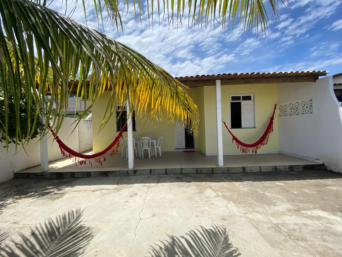 Imagine chegar, deixar as malas e sentir o ritmo desacelerar. A varanda com rede convida a relaxar enquanto a brisa do litoral passa pelos coqueiros. Um espaço simples, acolhedor e tranquilo para viver dias de descanso perto do mar. A casa acomoda até 9 hóspedes, ideal para famílias ou amigos. Localizada em Estância, na famosa Praia do Saco, conhecida por suas dunas, pelo mar tranquilo e pela beleza natural.
