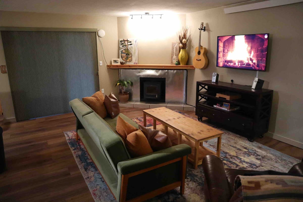 – 765 mp, apartament la etajul 1 – Curte pavată privată cu vedere minunată la munte – 2 magazine alimentare/băuturi alcoolice majore cu/la 5 minute de mers pe jos – 2 trepte cu cadă cu hidromasaj de la ușa din față, curățate zilnic cu vestiar încălzit – Șemineu eficient cu gaz – Autobuz gratuit spre munte și centrul orașului — 5 min oricum – Bucătărie complet aprovizionată cu condimente, blender și echipament complet de gătit – Gratuit cafea, ceai și fulgi de ovăz furnizate – Săp, șampon și balsam furnizate - La câteva minute distanță de apele de păstrăv cu panglică albastră și de traseul de bază.