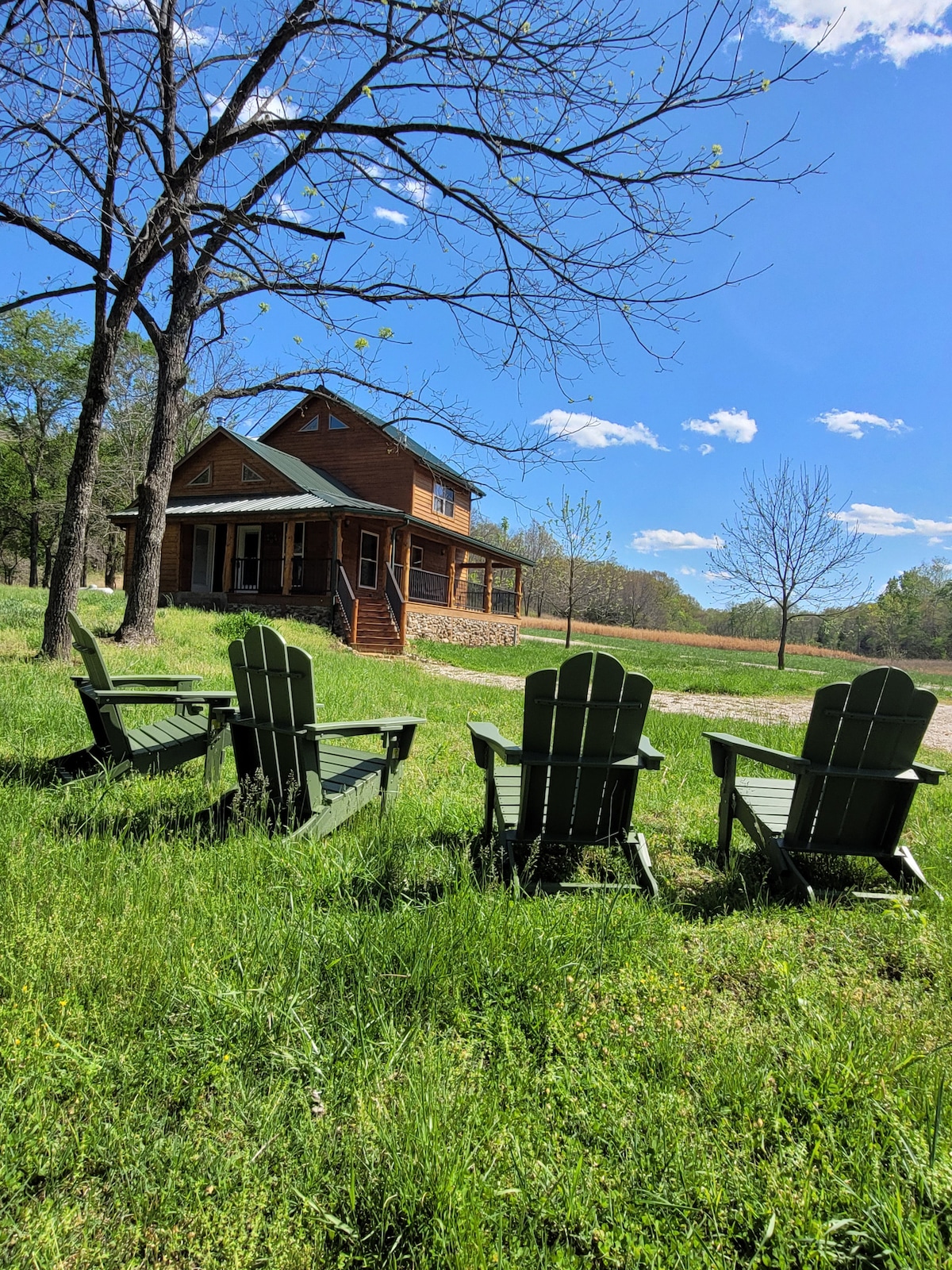 O cabană caldă, din luna de miere de pin, înconjurată de peisajul rural pastoral din Ozark. Râul Meramec curge prin această fermă de familie din a șaptea generație. Interiorul confortabil include o chicinetă, zonă de luat masa și pat dublu la nivelul principal. Toate intensitățile de gătit sunt dotate cu cafea, ceai și produse din hârtie. DVD-urile și cărțile disponibile te așteaptă pe scara în spirală din mansardă. Pat complet la nivelul principal și două paturi de o persoană la etaj. Vedere extinsă de pe veranda din față a celor mai înalte blufuri de pe Meramec.