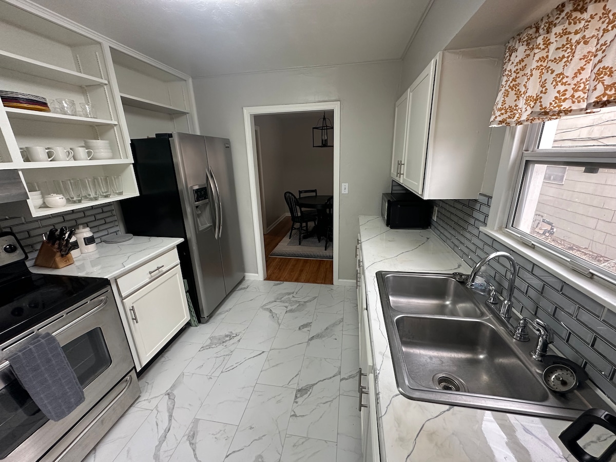 HOMEBASE, #2, CENTRUL TUTUROR! Locuință complet renovată, superbă, 750 SF, chiar peste drum de Athletic Village și la 5 minute de mers pe jos de stadionul Boone Pickens. Spațiu confortabil, curat și primitor pentru a crea amintiri în timp ce te afli în oraș pentru un spectacol McKnight Center sau un campus/eveniment sportiv OSU. Bucătărie complet utilată, gata să ia masa sau o listă detaliată a restaurantelor Stillwater de care să te bucuri în timp ce te afli în oraș. Fără petreceri organizate în interiorul locuinței/în afara proprietății, fără animale de companie și fără fumat.
