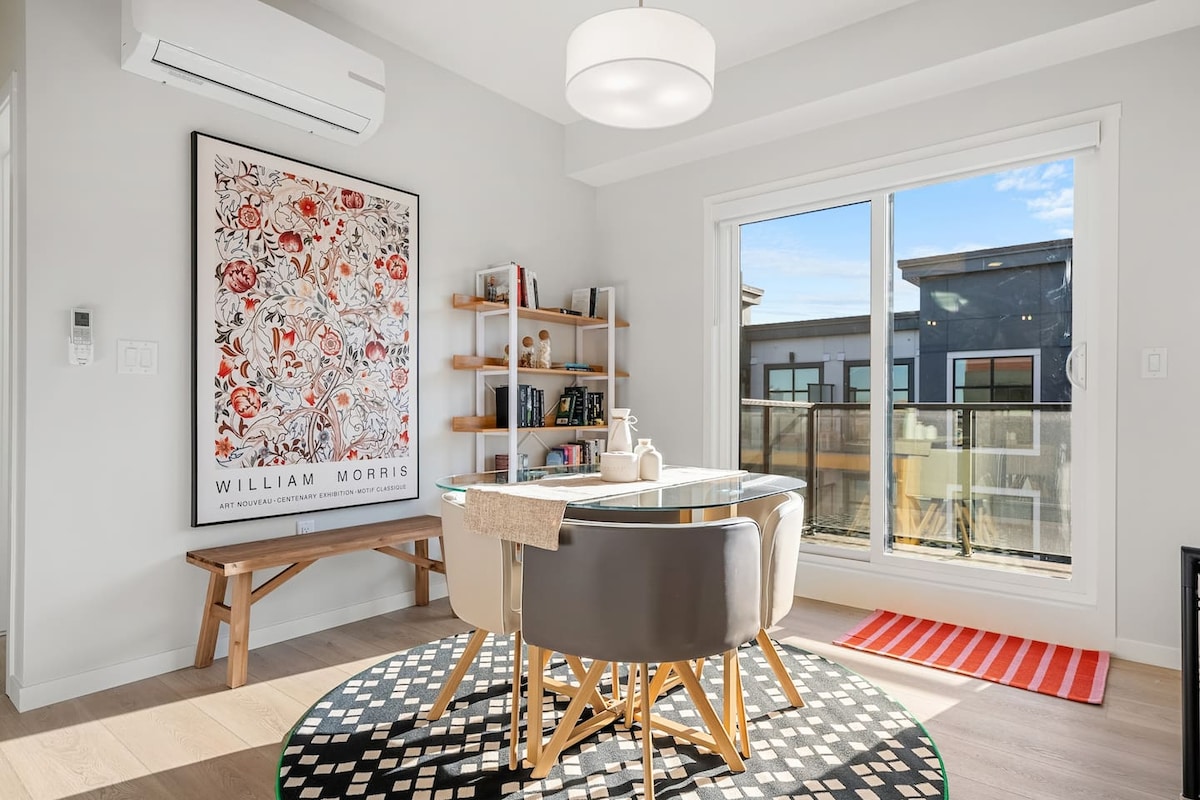 🌟 O unitate mobilată de designer într-o comunitate sigură și vibrantă, cu un balcon privat, la câțiva pași de campusul Seton Health, YMCA, mese și cumpărături, plus acces ușor la Deerfoot & Stoney Trail. 🌟 Pat 💎 matrimonial cu TV inteligent de 50"cu Netflix Pat 💎 matrimonial și canapea extensibilă matrimonială Televizor inteligent de 💎 70"cu Netflix 💎 Bucătărie complet utilată 💎 Mini-bibliotecă și birou Aer 💎 condiționat separat și încălzire individuală a camerei 💎 Mașină de spălat și uscător automat de rufe 💎 Cafea și ceai gratuite 💎 Parcare subterană și pentru vizitatori Wi-Fi 💎 rapid (250 Mbps)