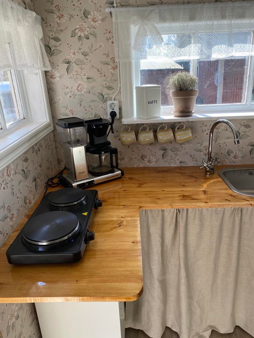 După o noapte minunată în casa din grădină, micul dejun este luat la docul de lângă iazul mare. Cu o ceașcă de cafea proaspăt preparată în mână, te uiți peste frumoasele terenuri, asemănătoare parcului, unde există întotdeauna ceva interesant de descoperit. Cu apa strălucitoare a lui Mälaren la doar o scurtă plimbare, este ușor să atragi o baie la Stockbybadet. Suntem aproape de marele oraș, dar încă în mediul rural și la câțiva pași atât de un magazin alimentar, cât și de o patiserie minunată, ești fericit să stai puțin mai mult.