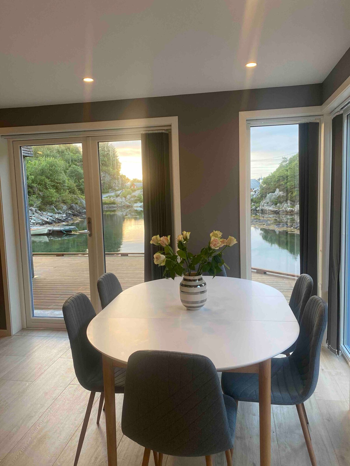 Un apartament cu vedere spectaculoasă: Prin ferestrele mari, vezi fiordul și munții, iar departe, poți vedea ghețarul. O călătorie ușoară de la Bergen Center. O oră cu un feribot de pasageri de viteză de la Strandkaiterminalen, Bergen. Sau de la Aeroportul Flesland, 15 minute cu autobuzul/taxiul până la portul Flesland și 40 de minute până la Møkster. Apartamentul este situat la 15 minute de mers pe jos de portul Møkster, la 1,2 km. Există un magazin alimentar modern bun în port.