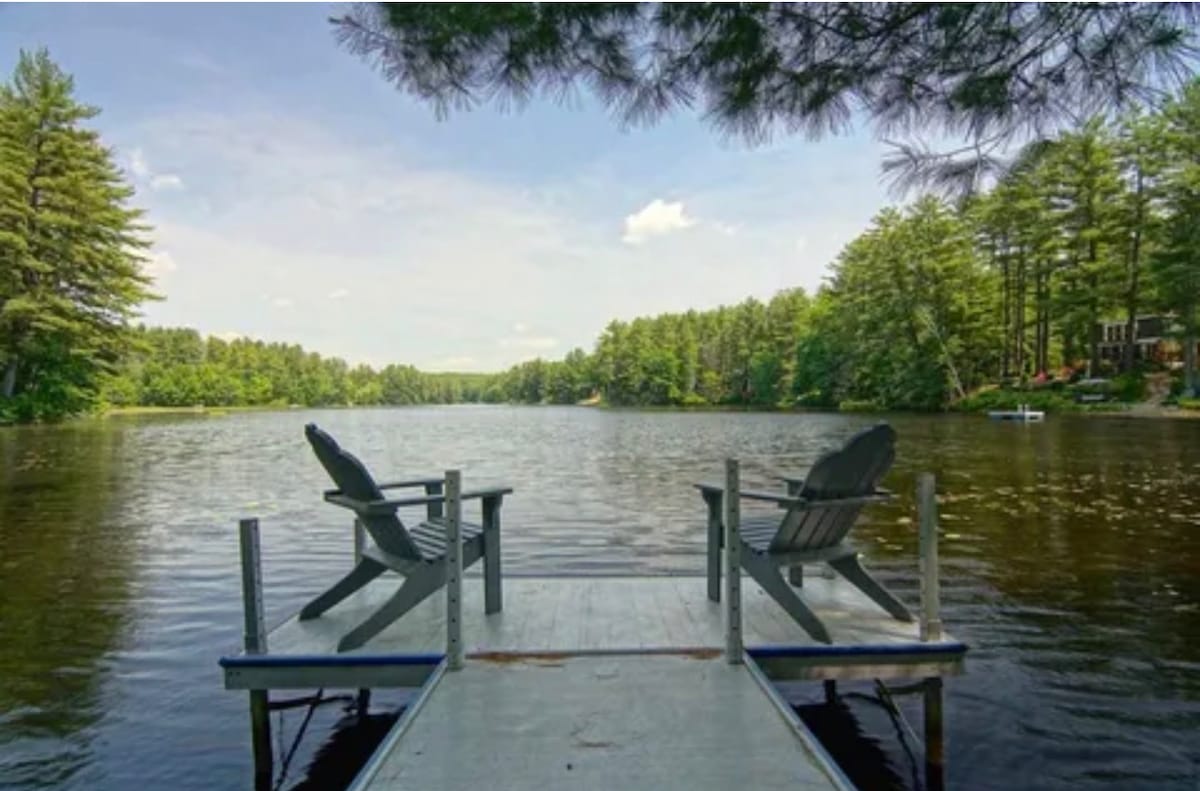 Escape to a peaceful, lakeside retreat with a secluded sun-lit deck and private dock with incredible views of Sunrise Lake, plus a 4-person hot tub, and seasonal amenities like a pedal boat, two kayaks, a SUP board, gas fire table, central A/C, a pellet stove, and snowshoes. Enjoy nearby activities like hiking, leaf peeping, skiing, and visiting scenic towns, local vineyards and breweries — or simply relaxing in a beautiful lakefront setting. The sunsets can be unbelievable!